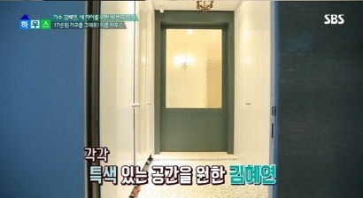 김혜연은 "현관부터 포인트를 주고 싶었다"며 현관 바닥을 화이트가 아닌 무늬있는 타일로 선택한 이유에 대해 말했는데,