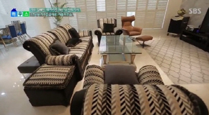 공개된 안방은 깔끔한 화이트 톤에 골드로 포인트를 준 모습. 거실은 직접 발품 팔아 골랐다는 샹들리에가 눈길을 끌었습니다. 특히 우물처럼 파여있는 천장 몰딩은 화려함을 더했는데요.