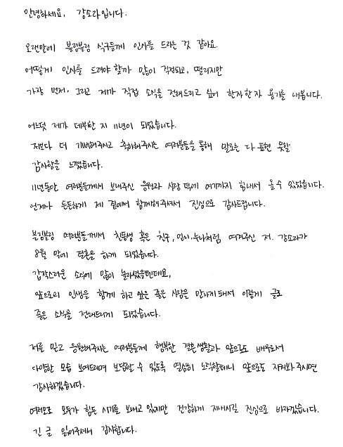 11년 동안 여러분들께서 보내주신 응원과 사랑 덕에 여기까지 힘내서 올 수 있었습니다.