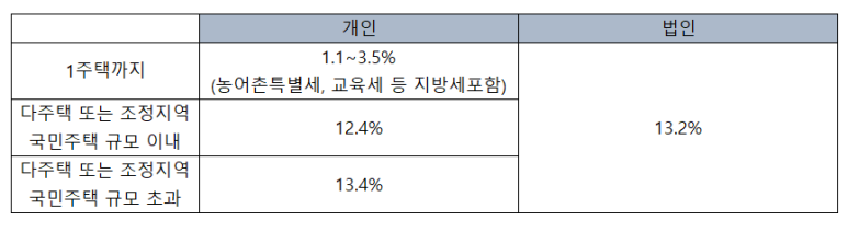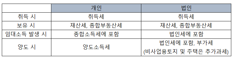 취득세의 경우 개인이 법인에 비해 유리합니다.