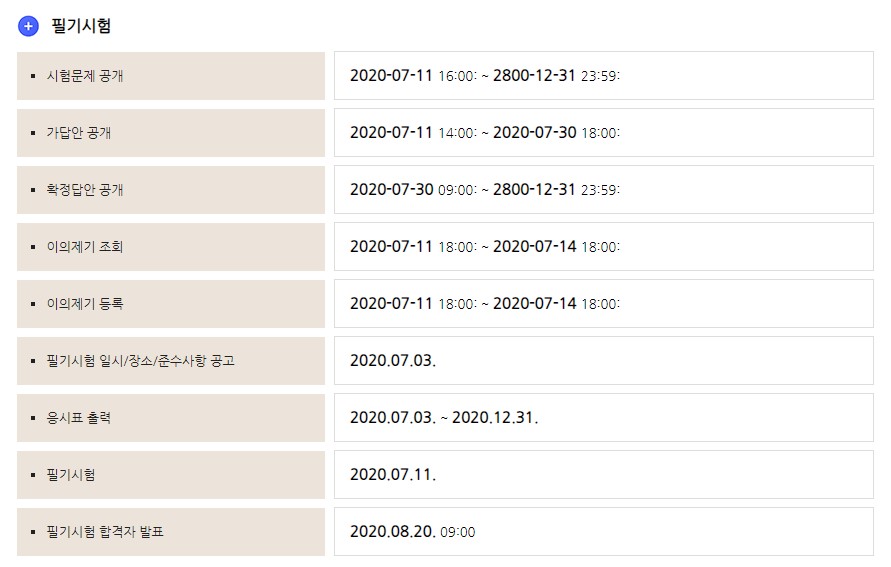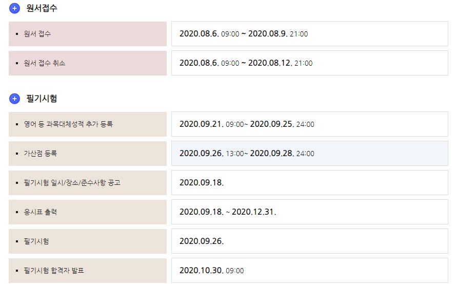 이후 시험일정이 변경되어 1회 시험이 필기시험은 동일한데 필기시험 합격자 발표일이 지연되면서 면접시험은 8월 24일부터 9월2일까지로 미뤄졌습니다. 최종 합격자 발표일도 9월 18일로 변경되었습니다.
