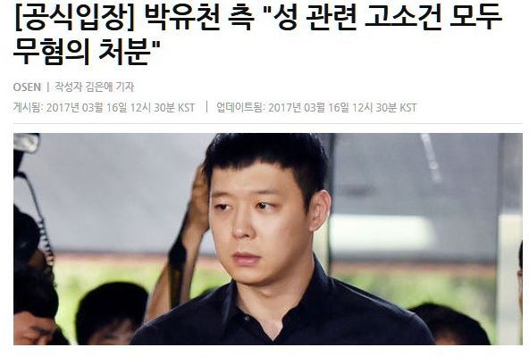 결론 - 박유천 x폭행, 매매 전부 무혐의. 4명의 무고녀중에 1명만 실형선고