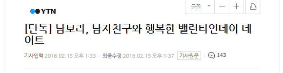 (2016년 2월 15일 오전 11시 33분, 남보라 열애설 보도 이후 2시간만에 나옴)