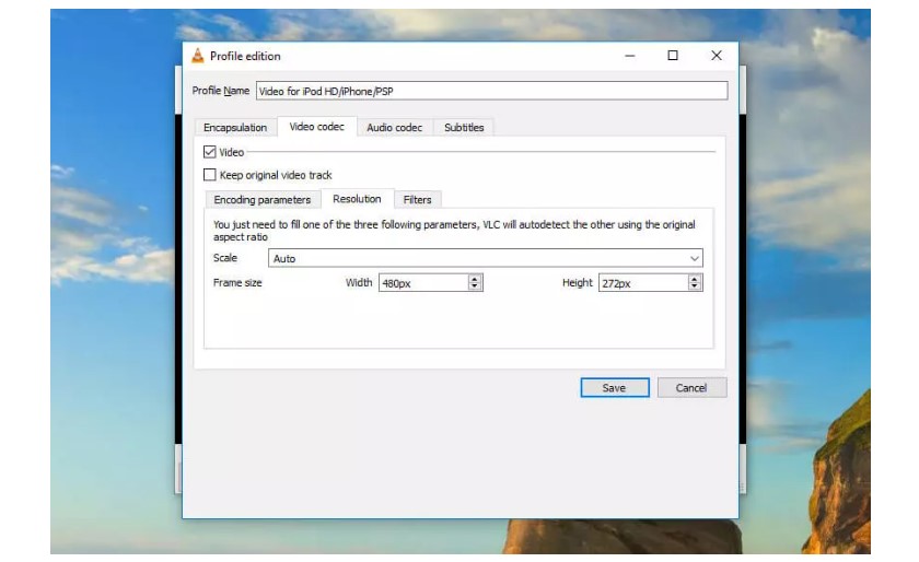 비디오 파일 크기를 추가로 줄이려면 해상도를 변경해야 하고 현재 비율을 유지하도록 스케일을 조정하거나 수동으로 비디오 크기를 조절할 수도 있습니다. 작업을 마치면 저장을 눌러 대상 위치와 파일 일므을 입력하고 찾아보기를 클릭해 지정을 합니다.