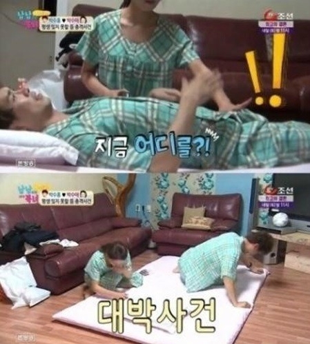 "내 남편이 돼줘 고맙다","사랑해요"라고 말하기도 했었습니다. 과연 두사람이 진짜 커플로 발전할수 있을지 많은 관심이 모아지고 있습니다. 한편 두사람은 방송중 재미있는 장면을 연출하기도 했는데요.