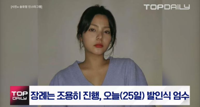 송유정의 빈소는 서울 의료원 강남분원에 마련됐으면 발인은 25일 오후 1시30분에 엄수 된다고 하는데요 장지는 서울 추모공원에 마련된다고 하는데요