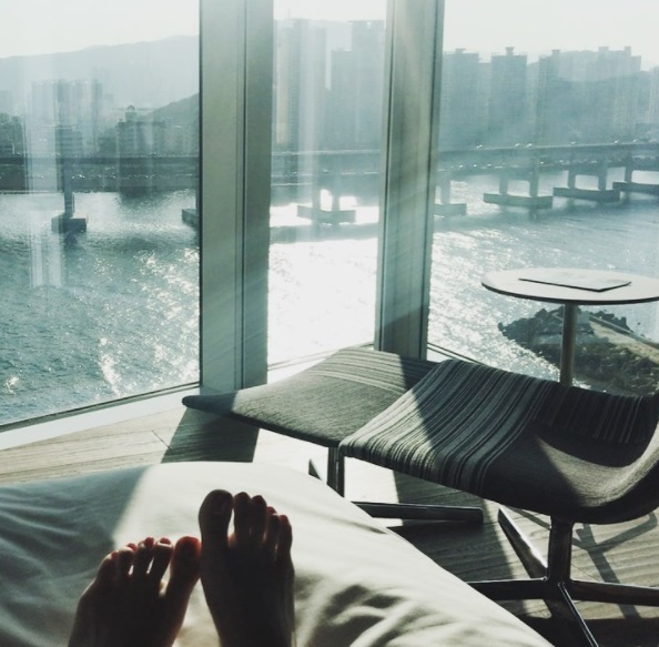 그녀와 같은 호텔에서 사진을 찍어