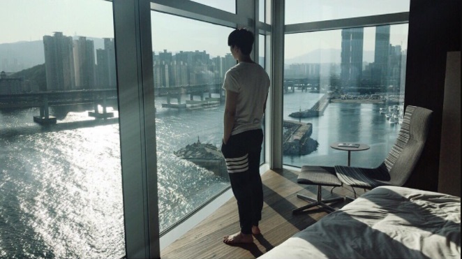 그녀와 같은 호텔에서 사진을 찍어