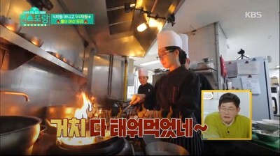 일반인들이 겁내하는 불쇼도 한번만에 미소지으면서 성공하고 초보자들이 흔히 하듯 뒤로 물러서는 모습도 없어 편스토랑 쉐프들이 혀를 내두를 정도였습니다.
