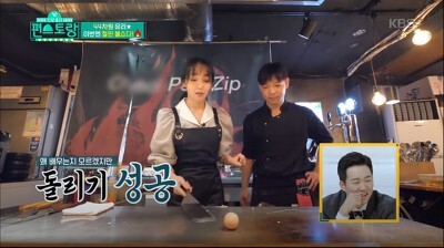 일반인들이 겁내하는 불쇼도 한번만에 미소지으면서 성공하고 초보자들이 흔히 하듯 뒤로 물러서는 모습도 없어 편스토랑 쉐프들이 혀를 내두를 정도였습니다.