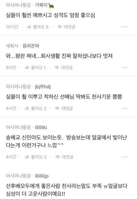 아시아나 후배 승무원들의 평판도