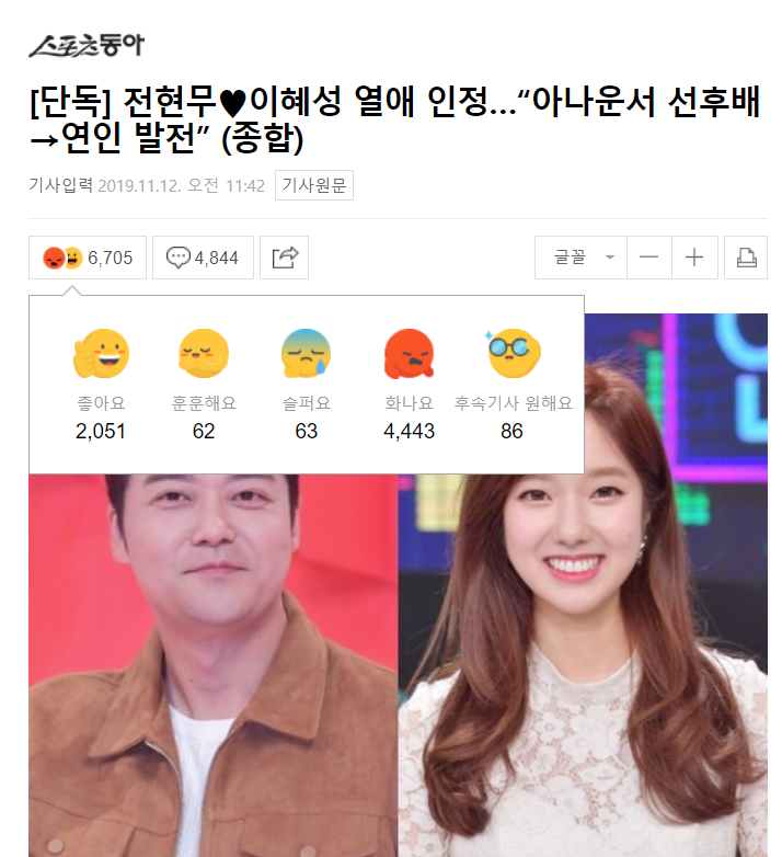 현재 네이버 메인 기사인데 좋아요보다 화나요가 두배나 더 많다.