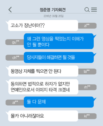 "경찰 조사 이후 정준영에게 고소 사실을 알리고 정준영을 만나 정준영에게 사과와 재발방지 약속을 받아내어 정준영이 일방적으로 동영상을 촬영한 정황 증거를 취득하여 저를 지킬수 있는 방편을 마련한 후에 고소를 취하 한 것"이라 설명했다.