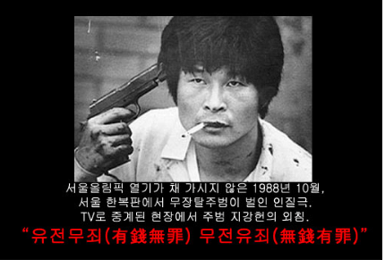 법의 엄격한 잣대는 너무나도 당연한 것입니다. 하지만 눈앞에서 특혜에 가까운 처벌을 받는것을 본다면 이것은 차별이라는 것을 누구나 느끼게 되는데요. 이에 반해 지강헌은 550여만원을 강도질하고 감시기간까지 17년을 선고받았었죠.