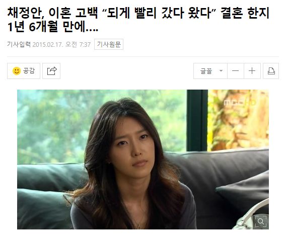자신의 이혼에 대해서 언급한 기사가 있어 첨부 합니다.