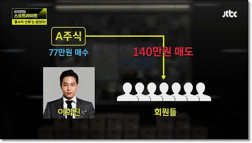 이희진 사기행각은 다음과 같습니다. 그는 방송과 개인 SNS를 통해 연 30억~40억 수익을 내고 있다고 밝히면서 그를 추종하는 사람들이 많았는데 그 사람들을 상대로 77만원하는 주식을 구입해 "곧 있으면 크게 오를 것"이라면서 회원들에게 2배 넘는 가격에 판매했습니다.