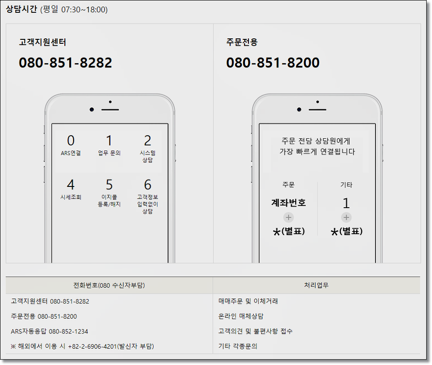 한화증권 고객센터 전화번호는 080-851-8282입니다. 평일 오전 7시 30분부터 오후 6시까지 상담업무를 지원하고 있으니 CMA통장 관련하여 궁금한 점이 있으면 전화해서 물어보시기 바랍니다.