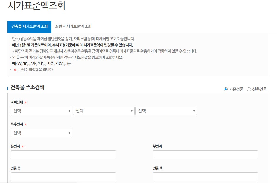 취득세 과세표준이란 취득자가 신고한 가액으로 하게 되어 있습니다. 신고를 하지 않거나 신고한 금액이 시가표준액에 미치지 못할 경우 또는 신고가액의 표시가 없을 경우에는 시가 표준액으로 계산하게 됩니다. 시가표준액은 위택스에서 조회할 수 있습니다.