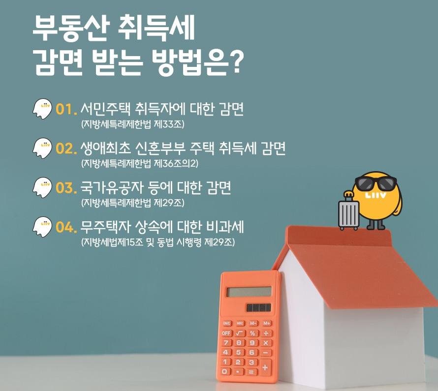 이 외에도 취득세 감면 사유가 더 존재하니 본인이 해당이 되는지 반드시 체크해보시기 바랍니다. 이런 게 바로 절세 비법 아니겠습니까?