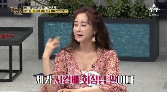 그는 "1997년에 미스 태평양이었는데 그때 당시 어떤 소문이 돌았냐면 제가 서경배 회장님의 딸이라고, 그래서 미스 태평양이 됐다는 소문이 파다했다"며 "되게 특이한 게 서경배 회장님이 웃을 때 살짝 턱이 나오는데 제가 비슷했다. 그래서 그런 소문이 돌았는데 제가 미스 태평양이 된 거다"라고 밝혔다.