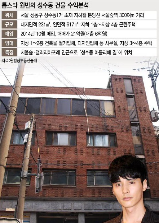같은해 서울 성수동에서 지상 4층 규모의 건물을 21억 매입했는데요. 당시만 하더라도 성수동이 지금처럼 핫플레이스는 아니었기 때문에 저렴한 수준에 매입한 것으로 평가 받았습니다. 현재는 35억~40억 원 정도로 시세가 형성된 것으로 알려졌습니다.