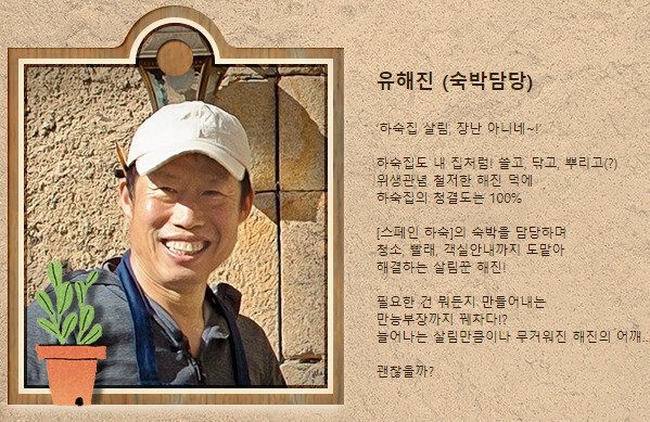 삼시세끼에서 모든 잡다한 일을 해줬던 유해진의 부지런함이 알베르게를 운영하는데 큰 도움이 될거 같습니다.