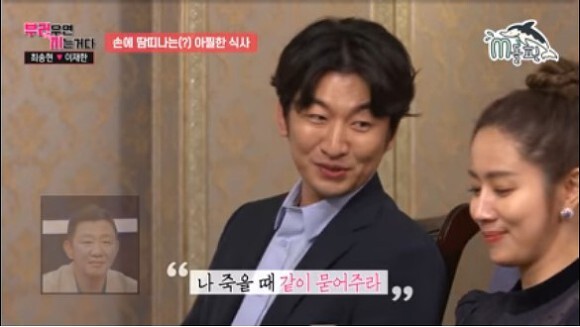 그리고 부럽지에서 나온 최송현씨 아버지와 이재한씨가 만나는 장면에서 날카로운 질문을 퍼붓던 최송현씨 아버지는 결국 아주 슬쩍 결혼하면~ 나랑 언제 술한잔 하지! 라며 이재한씨를 은근슬쩍 예비사위로 인정하는 듯한 발언을 합니다.