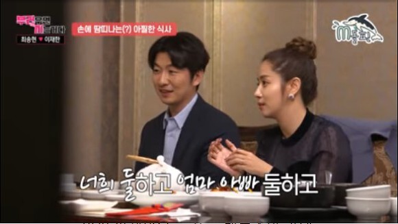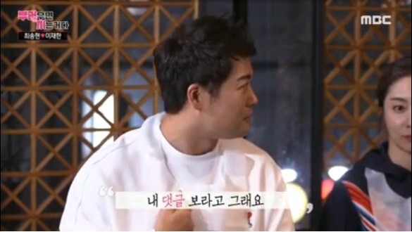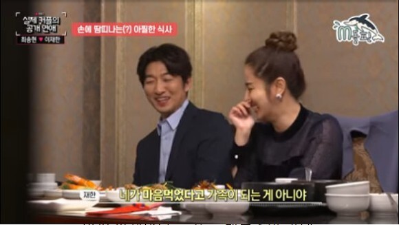그리고 최송현씨 아나운서 동기들 만나는 자리에서 이재한씨 소개하였는데, 이재한씨가 전현무씨 눈도 잘 못 마주치고 최대한 떨어져 앉고 자꾸 최송현씨만 바라보고 그랬습니다.