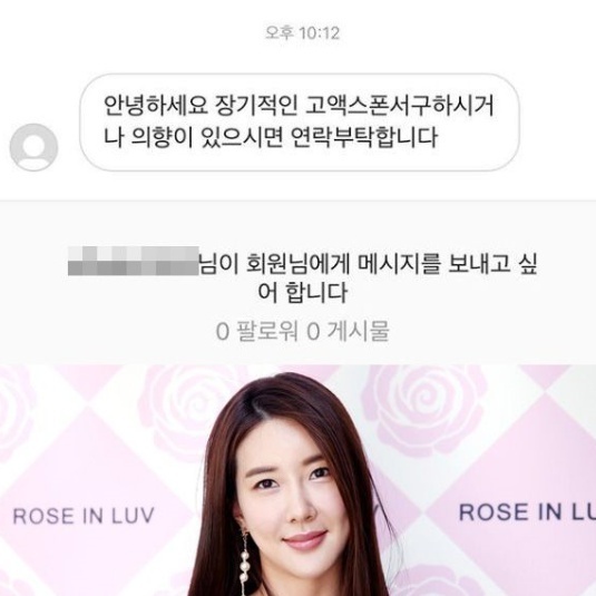 배우 장미인애(나이 37세)가 스폰서 제안을 받았다는 인스타그램 다이렉트 메세지를 폭로했다.